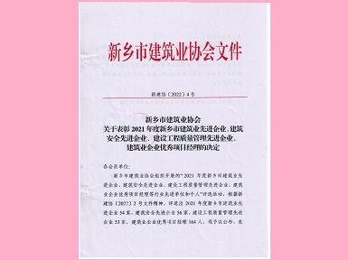 072022.04河南二建集團(tuán)鋼結(jié)構(gòu)有限公司再次榮獲“新鄉(xiāng)市建筑業(yè)先進(jìn)企業(yè)”等殊榮 -