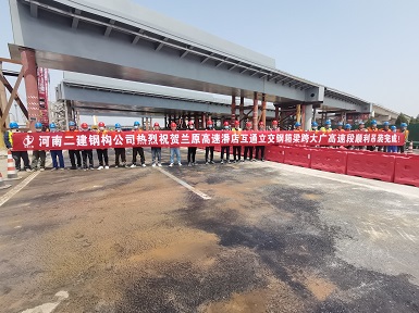 102022.05蘭原跨“大廣高速公路”潘店互通立交鋼箱梁橋順利跨越 -