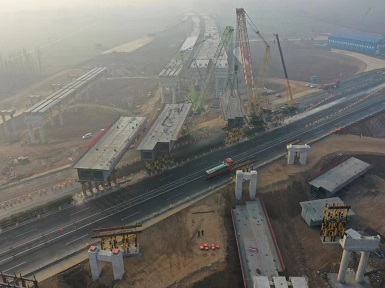 河南二建集團(tuán)鋼結(jié)構(gòu)有限公司方唐高速跨蘭南高速鋼箱梁項(xiàng)目順利完成跨路施工吊裝